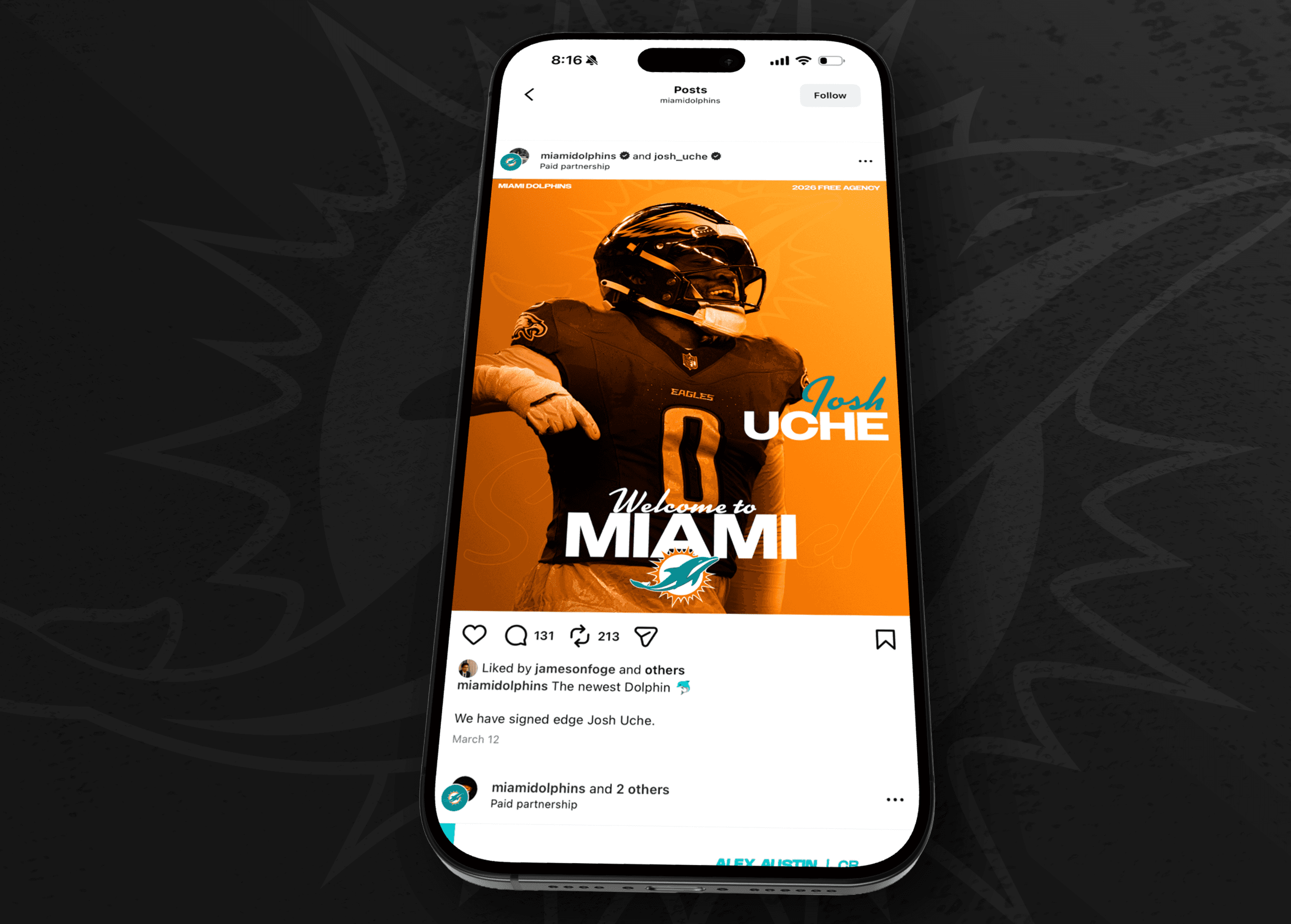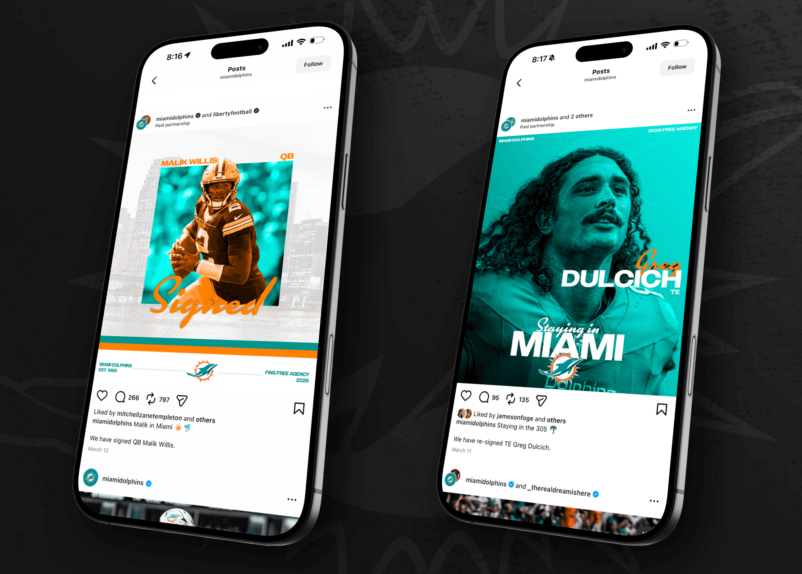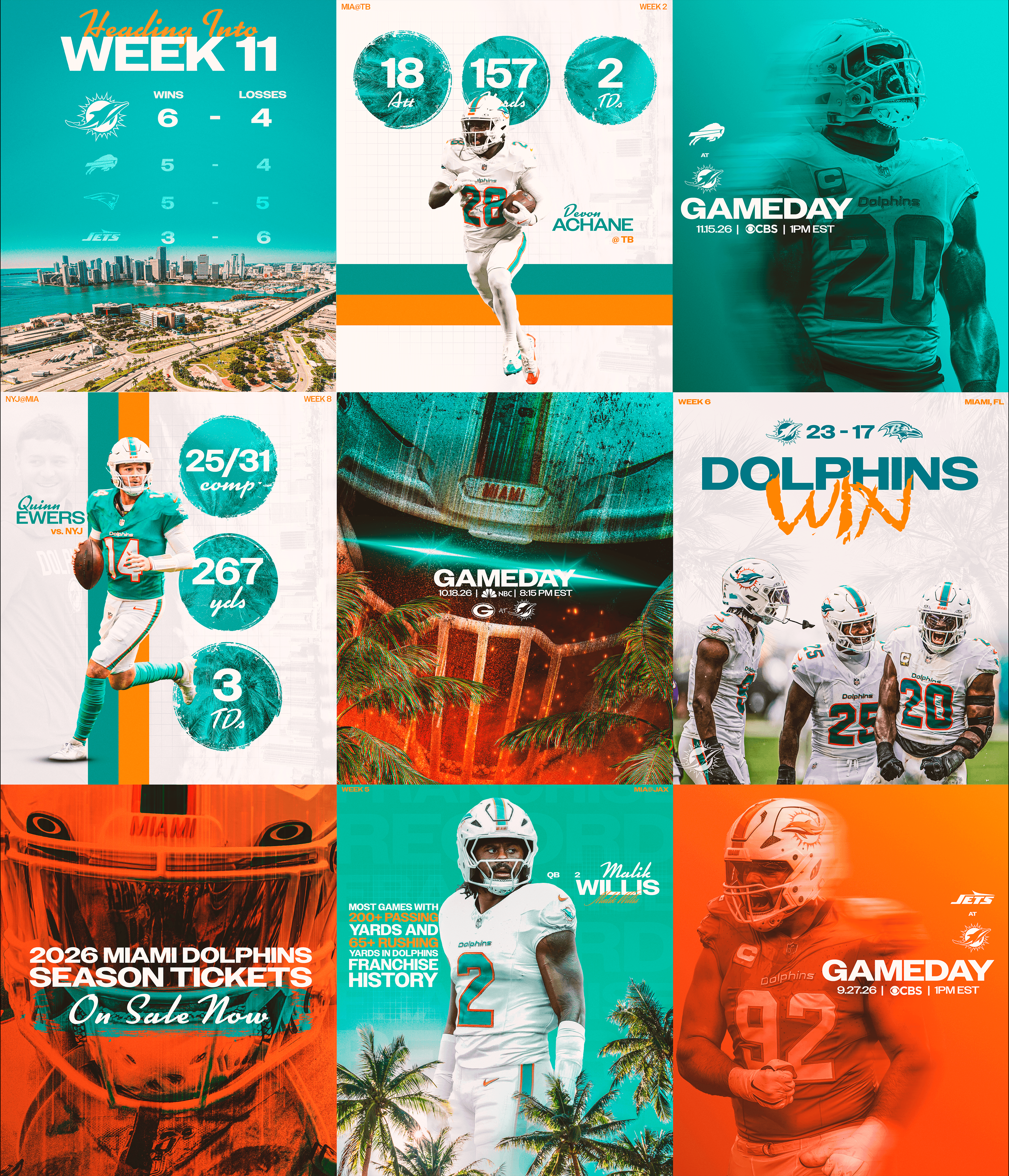 I wanted to take on a personal challenege of rebrandind the social media presence of a professional sports team. I love the tropical vibe and possibilities that come witht that. The Miami Dolphins being in a rebuild phase as a team seemed to be the perfect opportunity. Enjoy! -- DISCLAIMER: This is a personal project solely for the purpose of skill showcase and is in no way affiliated with the Miami Dolphins franchise or Hard Rock Stadium.